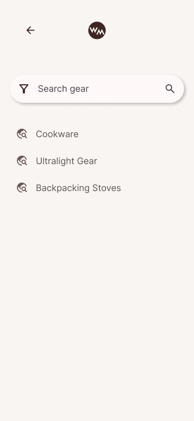 The Discover Gear page header was collapsed into the search bar. This parallels modern design systems and increased the scrollable area.