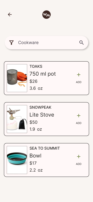 Backpackers can browse or search specific gear items, read reviews, and add gear to their gear lists with ease.