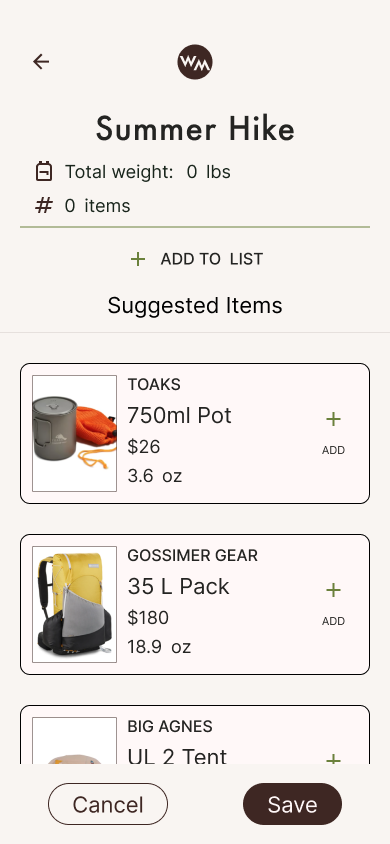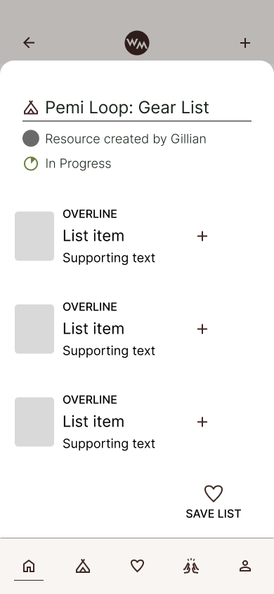Word of Mouth is an ongoing project to create a holistic planning app for backpackers and thru hikers. Users can search and interact with resources like gear lists, mentors, and hike routes. This case study focuses on the gear list feature.