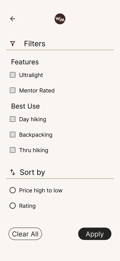 I combined the ux research and market research on backpacking trends to develop a brand identify that felt succinct with backpacking culture. Backpackers tend to associate with refined, utilitarian design that reference spaces in nature. This directly influenced the color palette and simplified ui elements.