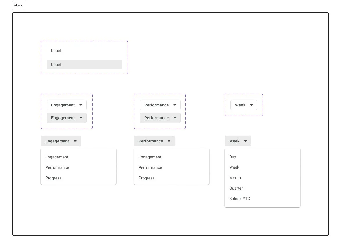 The high fidelity wireframes were created with Google’s design system for a seamless implementation of the analytics feature. The wireframes guide users through the main task flow: accessing student engagement data. An additional screen, student Performance Analytics, is included to help further contextualize the range of data educators need to capture.