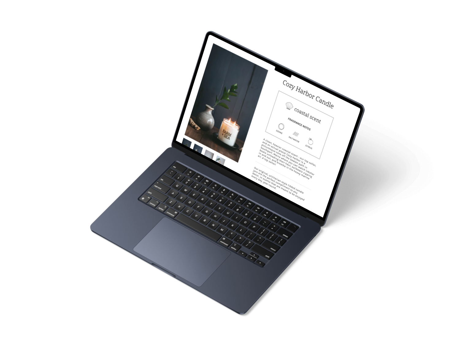 Users were provided with the early prototype and asked to imagine that they are interested in exploring the Farm + Sea website, and eager to learn more about the Cozy Harbor candle.