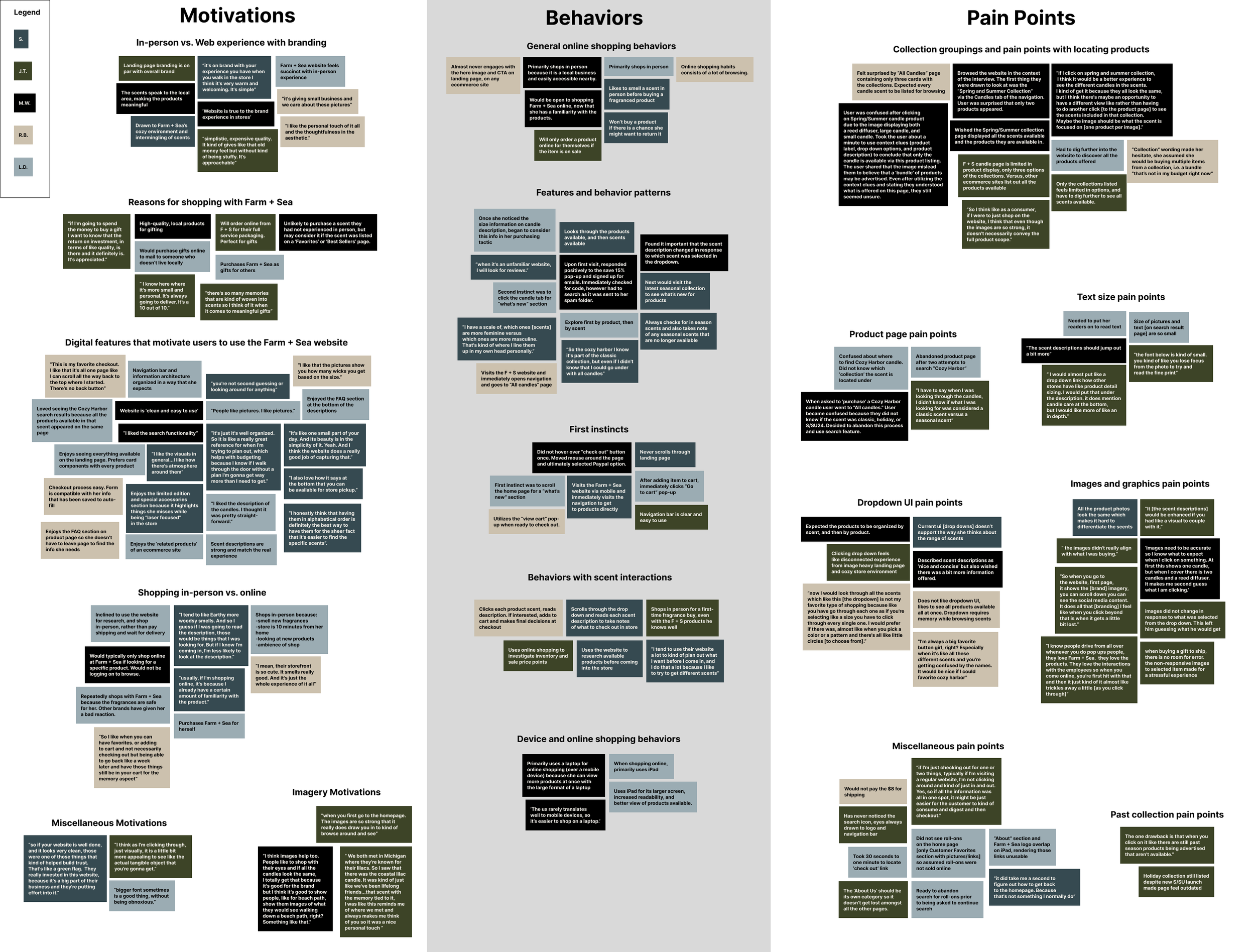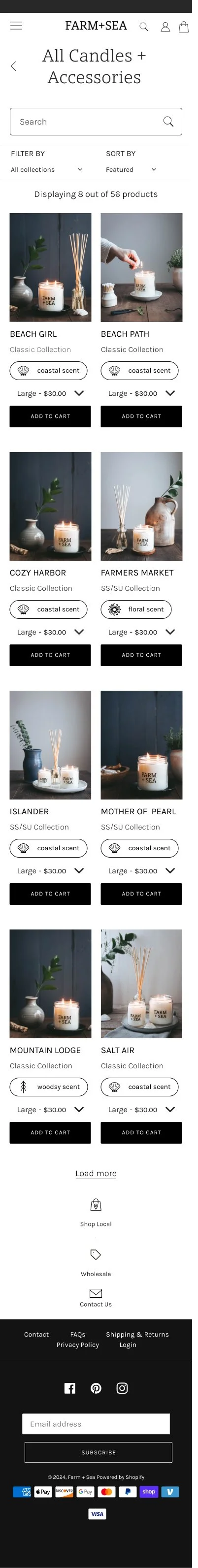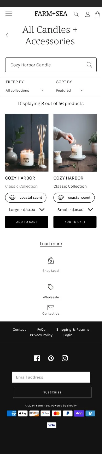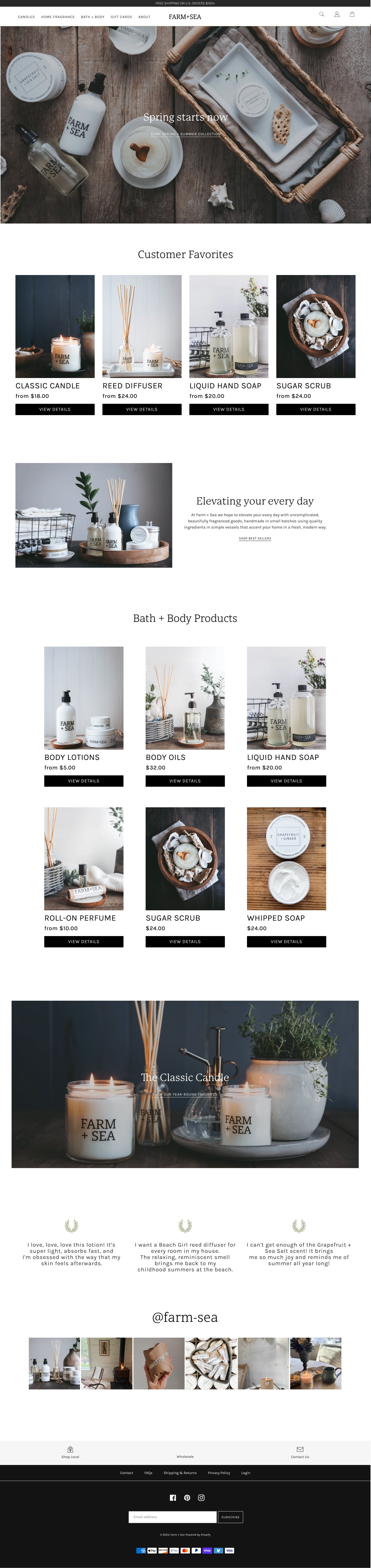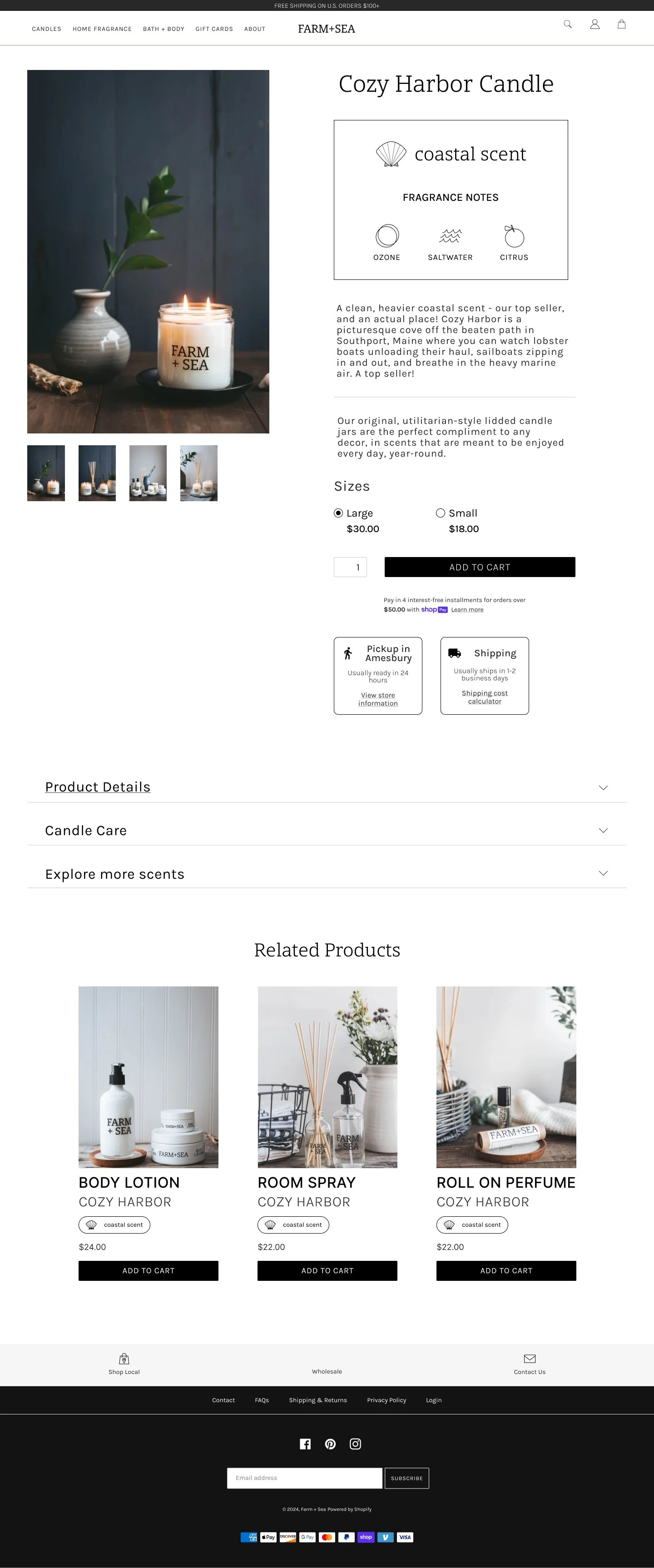 Users primarily goal while visiting the Farm + Sea website is to research product inventory, new scents, and new products released